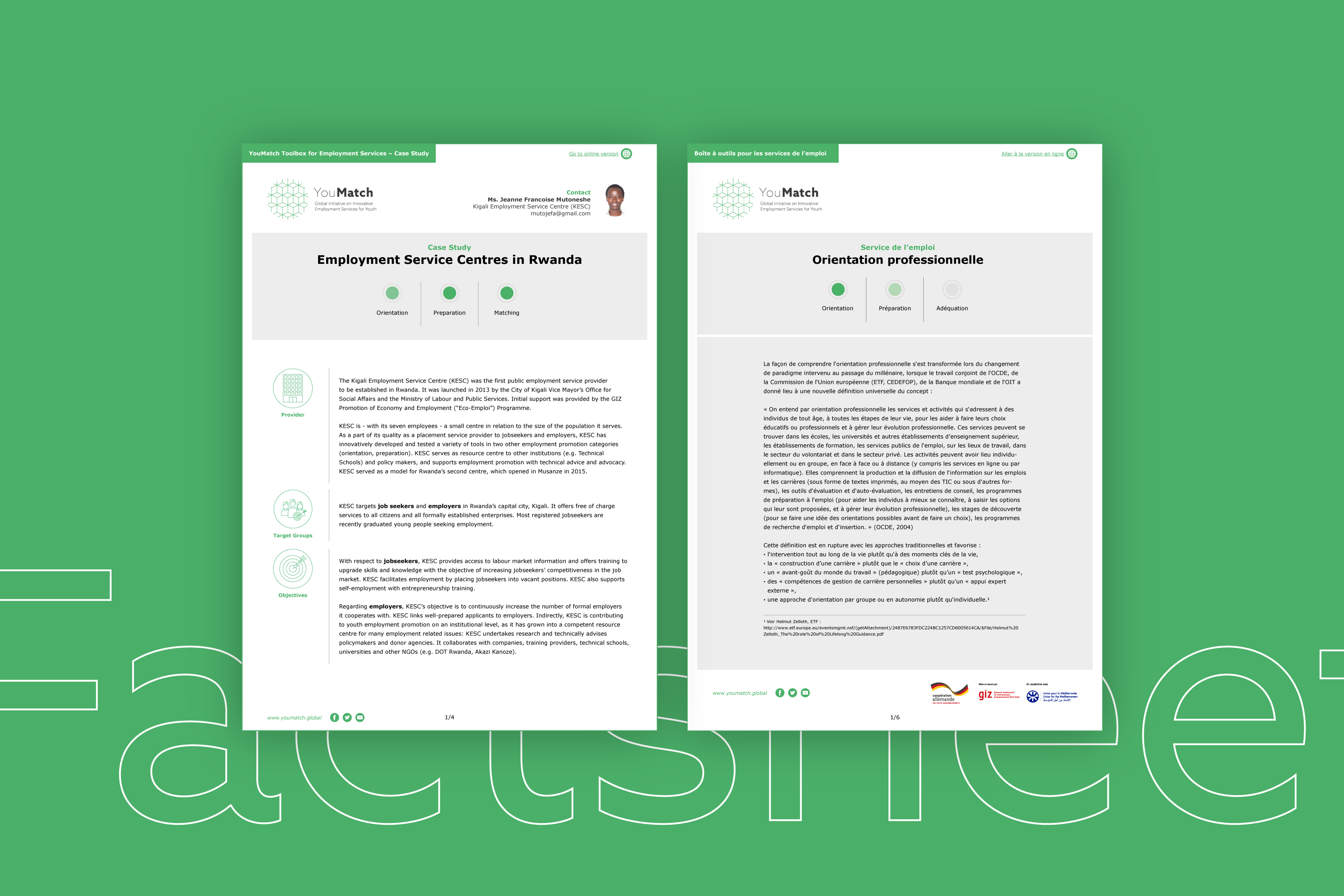 Aufgabe war es dieser Initiative ein eigenständiges und international verständliches Erscheinungsbild zu geben, dass sowohl auf Printprodukten wie Geschäfts- & Präsentationsausstattungen als auch in Online- & Socialmedia Auftritten weltweit einheitlich wahrgenommen und als Angebot zur Teilhabe verstanden wird. Außerdem galt es eine kundenseitig pflegbare, dreisprachige, benutzerfreundliche und skalierbare Responsive-Website zu konzipieren, umzusetzen und langfristig zu betreuen, die das Netzwerk und ihre Partner, Tools und Good Practices zur Arbeitsvermittlung sowie Informationen zu News, Events und Publikationen klar, dynamisch und zeitgemäß präsentiert.